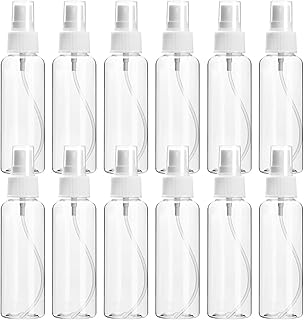 Leere Sprühflaschen ULG Feinnebel Kunststoff Sprühflaschen 12 Pack 3,5 oz / 100 ml nachfüllbare Kunststoff-Sprühflasche Mini Klar Reise Sprühflasche mit Zerstäuber Pumpen für Alkohol Parfüm