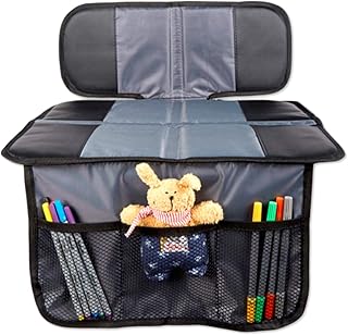 Kindersitz Unterlage mit Netztaschen Schutzbezug Sitzschoner Schwarz Schutzunterlage Autositzauflage Rücksitzschoner