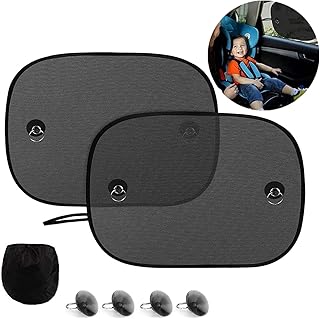 Rajvia Auto Sonnenschutz, Dehnbarer Mesh Seitenfenster Sonnenblende mit Starkem Saugnapf, Innenraum, UV-Schutz, KFZ Heckscheibe Blind für Baby, Haustiere, Schwarz, 2er-Pack