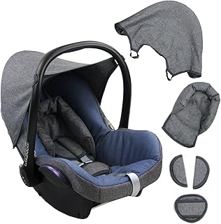 BAMBINIWELT Ersatzbezug für Maxi-Cosi PEBBLE 5-tlg, Bezug für Babyschale, Komplett-Set GRAU/BLAU XX