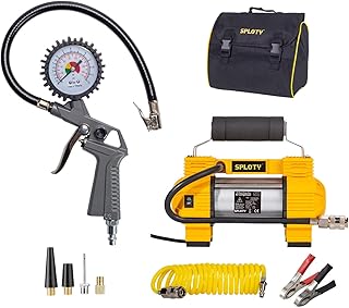 SPLOTY Reifenfüller Tragbarer Auto-Luftkompressor, AC 110V / DC 12V Dual Power Reifenpumpe mit Mehrzweck-Aufpump- und Entleerungsmodi, maximale Leistung, digitales Manometer