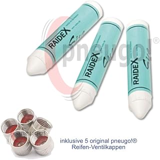 3 x Sisa Fettkreide weiß inkl. 5 Original pneugo!® Ventilkappen Reifenmarkierung