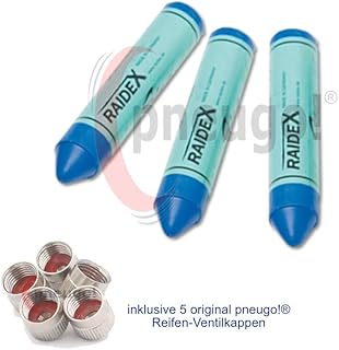 3 x Sisa Fettkreide blau inkl. 5 Original pneugo!® Ventilkappen Reifenmarkierung