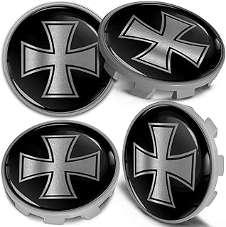 Biomar Labs 4 x 68mm Felgendeckel Nabenkappen Nabendeckel Kappen Radnabendeckel Nabendeckung Radkappen Kompatibel für Artikelnummer 36136783536 Alufelgen Deckel Schwarz Silber Iron Cross CB 24