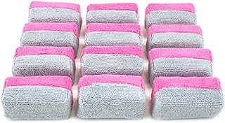 ONLYO [Saver Applicator Terry] Microfiber Ceramic Coating Applicator Sponge with Plastic Barrier for Ceramic Pro - 12 Pack (Pink/Gray, Mini)