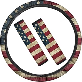 TOADDMOS Auto-Lenkradbezug und Sicherheitsgurt-Schulterpolster, Retro-Design, amerikanische Flagge, universelle Passform, SUV-3-teiliges Auto-Zubehör-Set